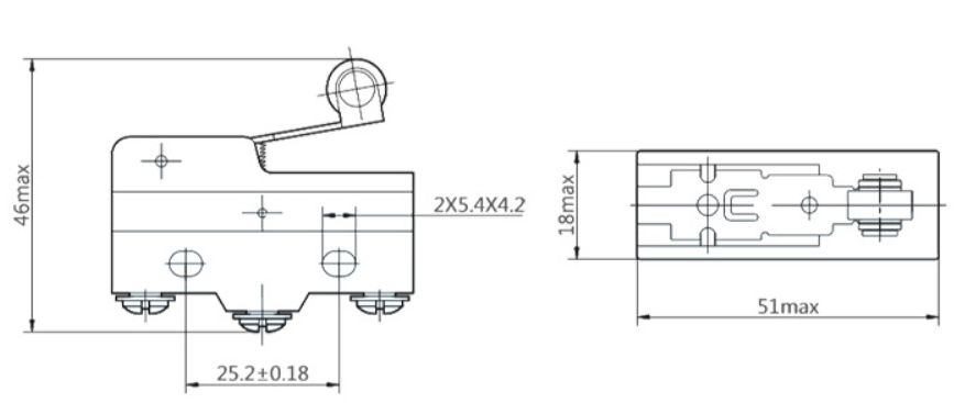 The travel limit switch is triggered mechanically, and the action of the contacts is used for control: when the moving parts of the equipment move to a preset position and touch the triggering mechanism of the switch (such as a roller or lever), it drives the internal mechanical structure to interact, causing the normally open/normally closed contacts of the switch to switch between on and off, thereby cutting off or connecting the control circuit to realize the start and stop of the equipment, limit protection, or process comutação.