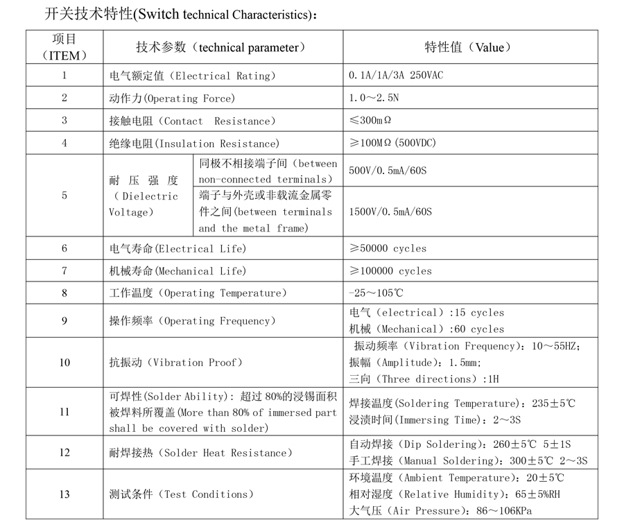 | 12 | Resistência ao calor da solda | Solda por imersão: 260±5°C 5±1S Soldagem manual: 300±5°C 2~3S |