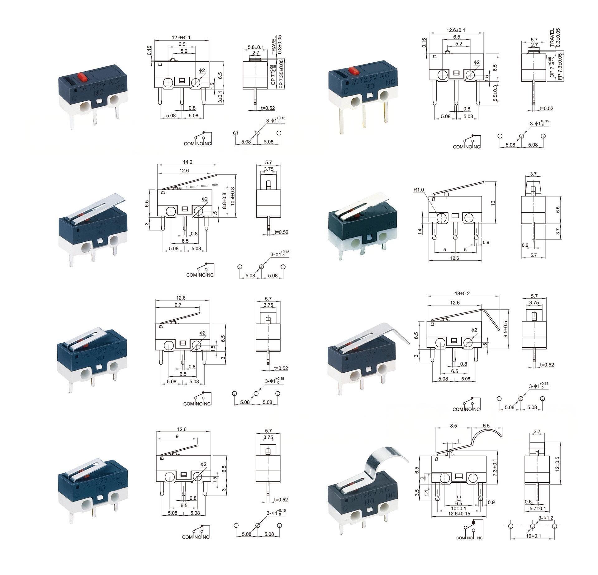 O Smart Door Lock Mouse Switch apresenta um design minimalista e ultracompacto, com dimensões gerais de apenas 18×10×6mm, reduzindo o tamanho em 15% em comparação com microinterruptores convencionais. Pode ser facilmente incorporado em dispositivos com espaço limitado, como pequenos sensores, dispositivos eletrônicos portáteis e instrumentos de precisão. Sua instalação é flexível, suportando três métodos de montagem: plug-in de PCB, soldagem e snap-in. Os terminais são padronizados no espaçamento, não necessitando de modificação nos pontos de montagem do dispositivo, melhorando em 40% a eficiência da montagem e reduzindo os custos de adaptação da produção dos fabricantes.