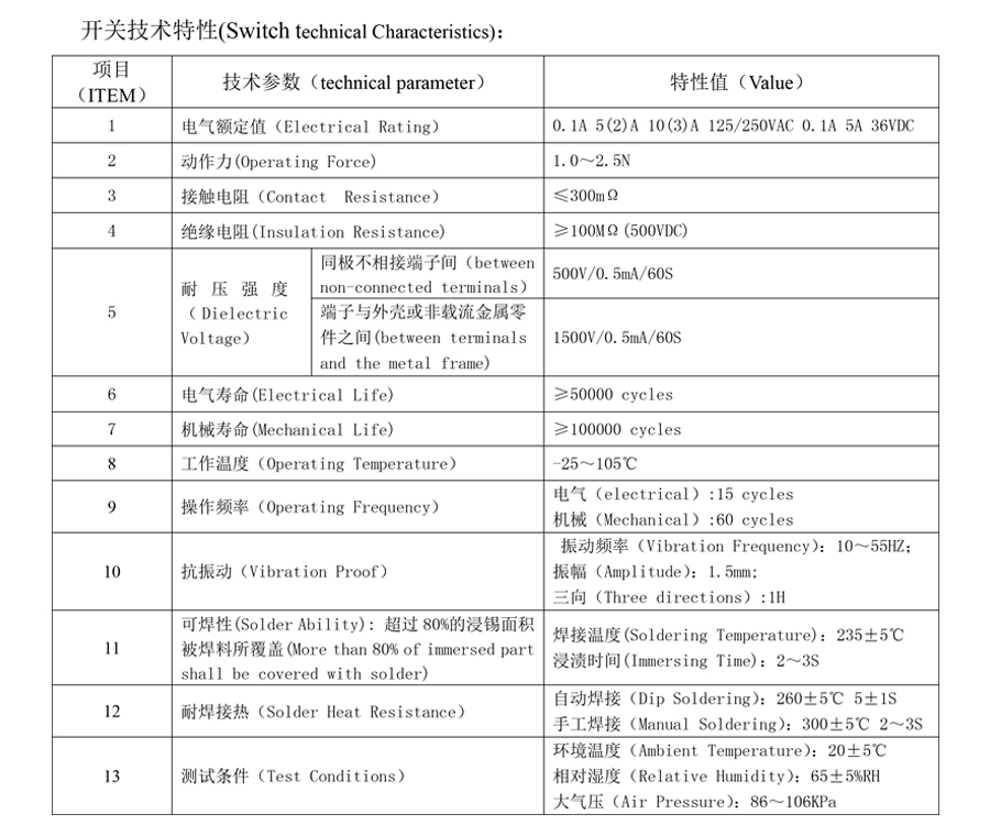 | 12 | Resistência ao calor da solda | Solda por imersão: 260±5°C 5±1S Soldagem manual: 300±5°C 2~3S |