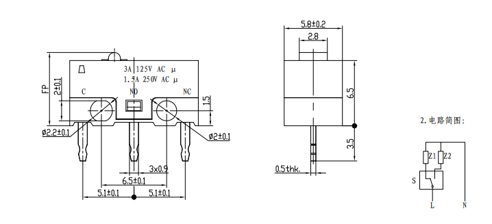 | 1 | Classificação elétrica: 1A/3A 250VAC |